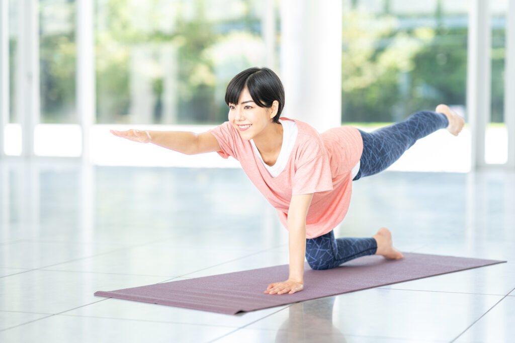 - 骨盤が動かないようにキープすることがポイントです。